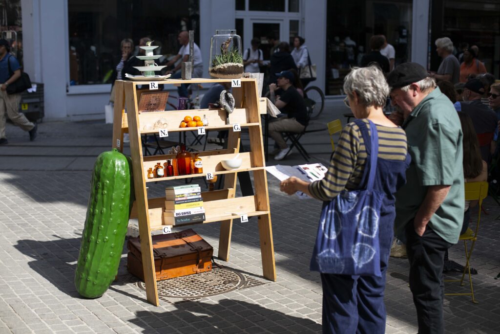 Deze installatie toont een selectie objecten uit winkels in de Lange Koepoortstraat, Wolstraat en Oude Beurs. Elk object is aangedragen door een winkelier als representatief of betekenisvol voor hun zaak. Samen vormen ze een compacte afspiegeling van de buurt. De kast staat op het kruispunt waar deze straten elkaar ontmoeten – het hart van de wijk.